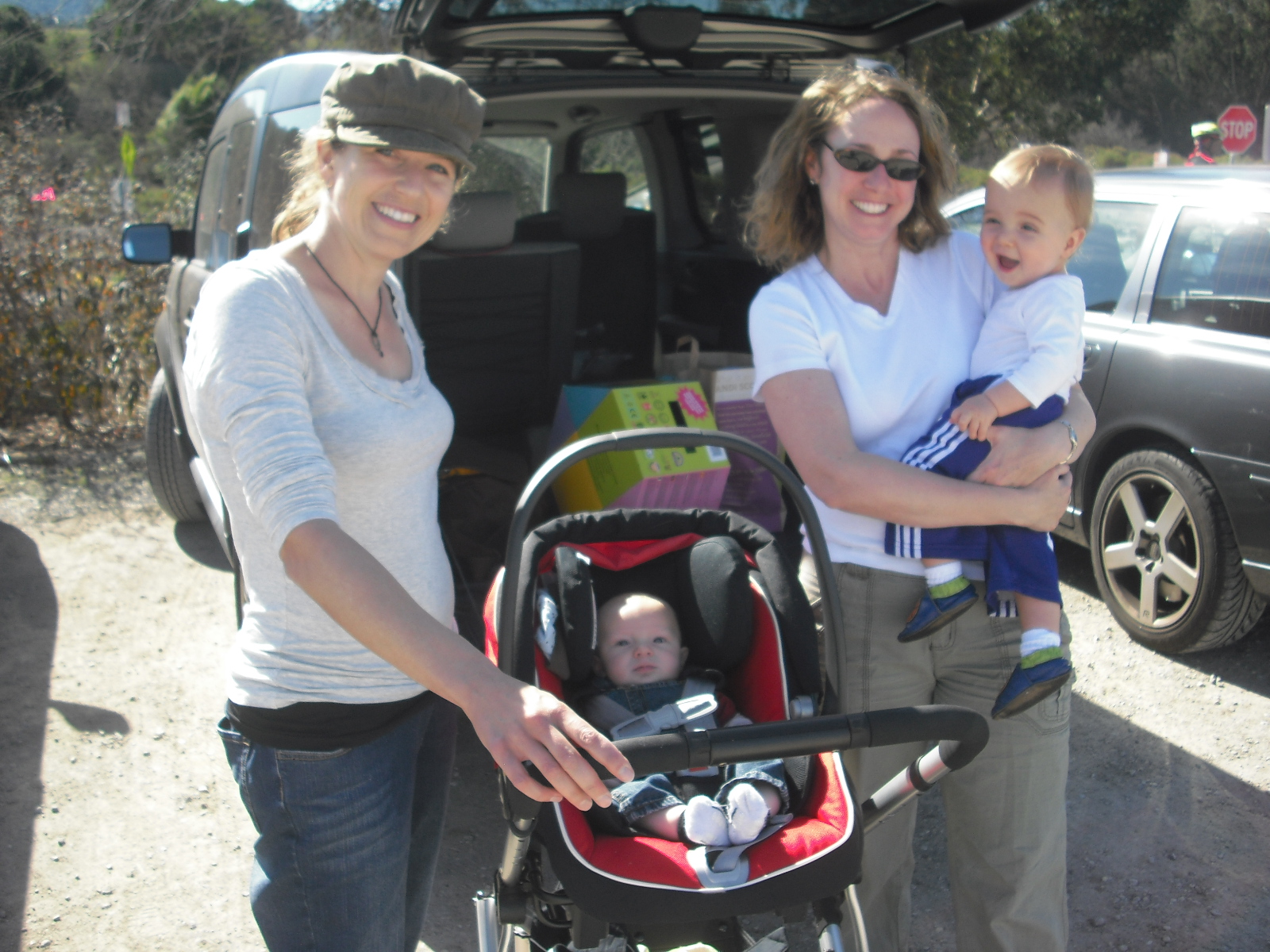 Before our hike at Arastradero Preserve. Bounty delivered to Jenny, who has a son months younger than Jake. We're but a link in a chain of hand-me-downs. The rest of our goodies went to Goodwill.