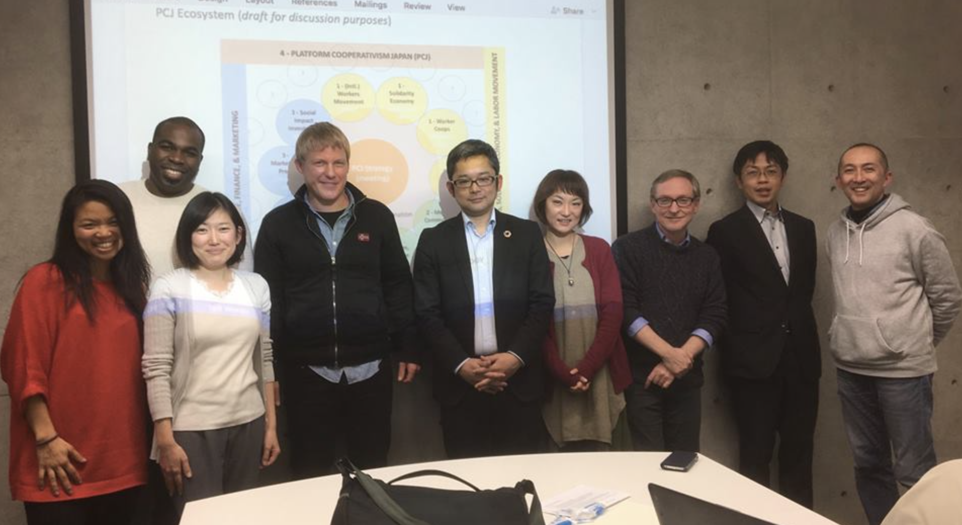 Mathias Sager (fourth from left) at Platform Cooperative Japan Consortium event. Photo courtesy of PCJ.
