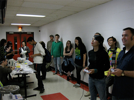 There was a 40″ LCD television in the hallways of the School of Visual Arts at the University of Windsor, placed in the location to run advertisements in exchange for free photocopying, but the ads never ran—instead, we hijacked the screen to have a Tetris tournament and screen a series of videos until it was taken down months later. (see more)