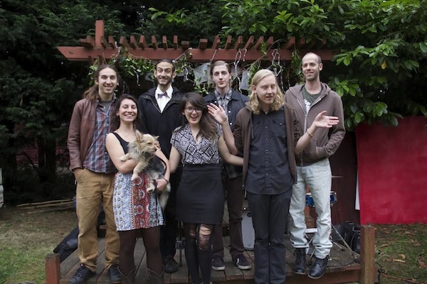 Community Supported Everything directors Sam Smith and Laura Scher with the first five fellows: Joseph Drushal, Cameron Frank, Mikele Schnitman, Lydia Grijalva, Henry Pollack, (and Bia the dog).