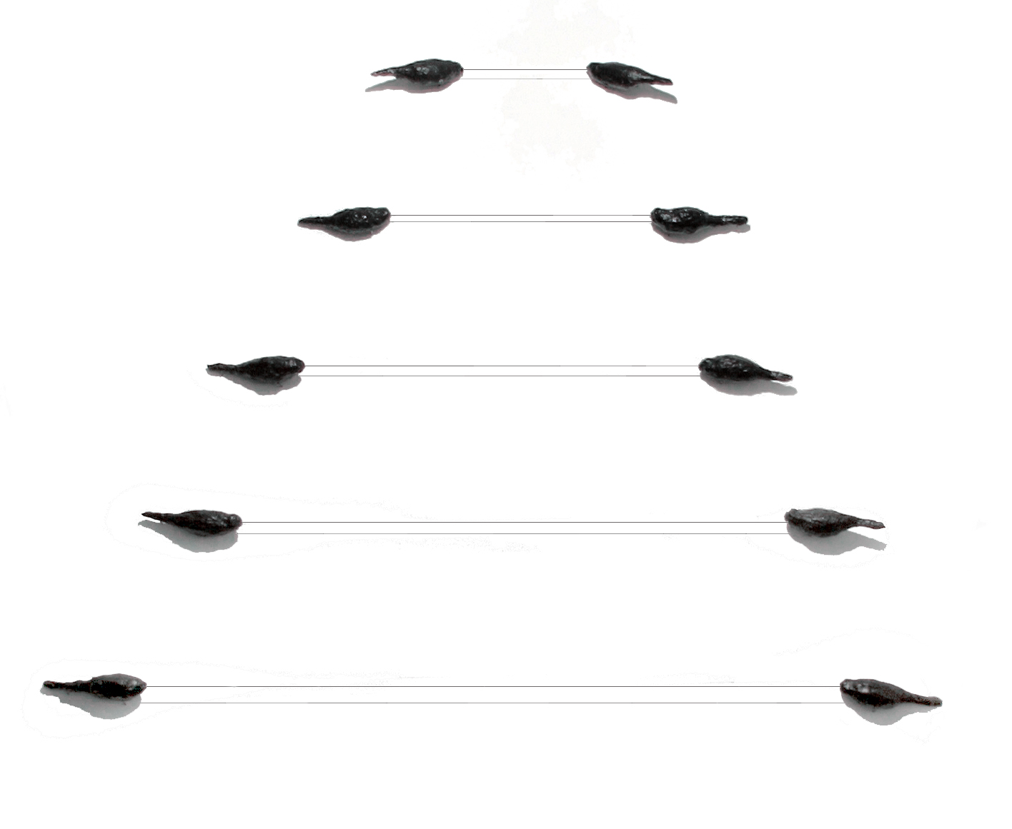 "Zugvogelschwarm" / "Swarm Of Migratory Birds" 2010 wood, metal, paint, kite string, 190x165x7 cm, Annika Unterburg