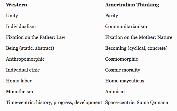 In essence, what’s the difference between the Andean conception of el Buen Vivirand Western thinking?