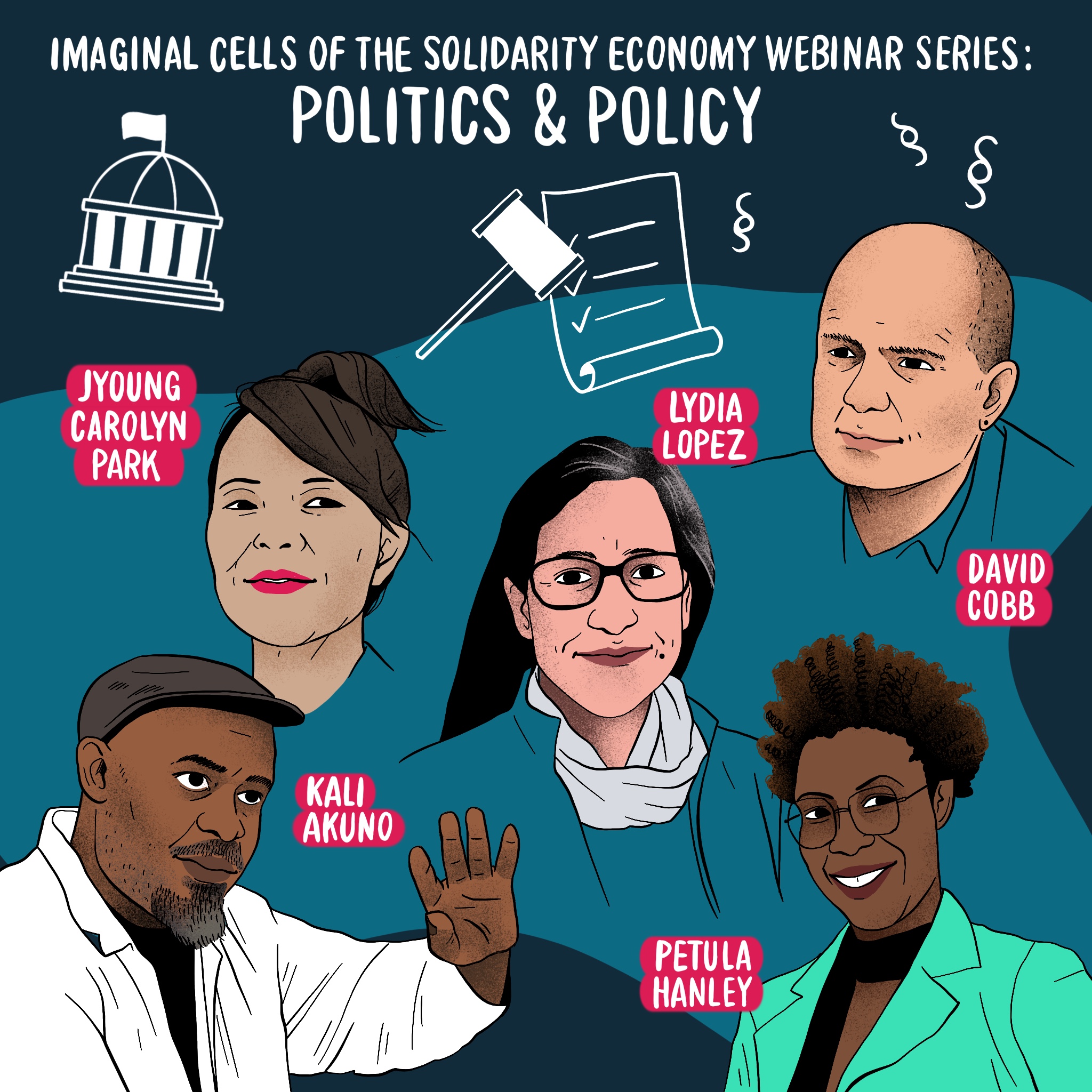 This week we are joined by David Cobb, Lydia Lopez, Jyoung Carolyn Park, Kali Akuno, and Petula Hanley to hear about how to use/influence public policy advance individual policies as part of a coherent strategy to democratize the entire economy. The webinar series on The Imaginal Cells of the Solidarity Economy showcases the myriad ways that solidarity economy practices are providing models and pathways to build a more cooperative, democratic, equitable, and sustainable world — one in which many worlds fit.