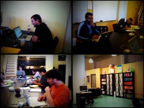 In coworking, freelancers and contractors share work space – and sometimes professional or philosophical affinities. On Tuesday morning, about twenty coworking managers, owners, and enthusiasts met for breakfast at Citizen Space to attend "The Current State of Coworking" – a discussion organized by Chris Heuer as part of Social Media Week, SF. People from Citizen Space, Parisoma, NextSpace, Hub BayArea, and others were present, and we Skyped with folks at La Cantine, a coworking space in Paris.